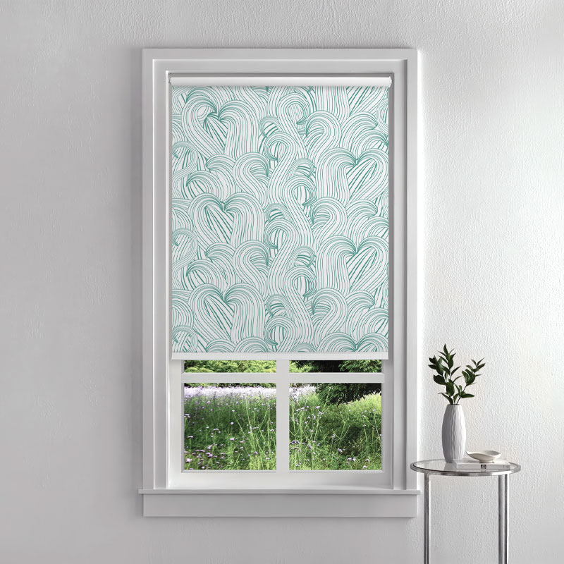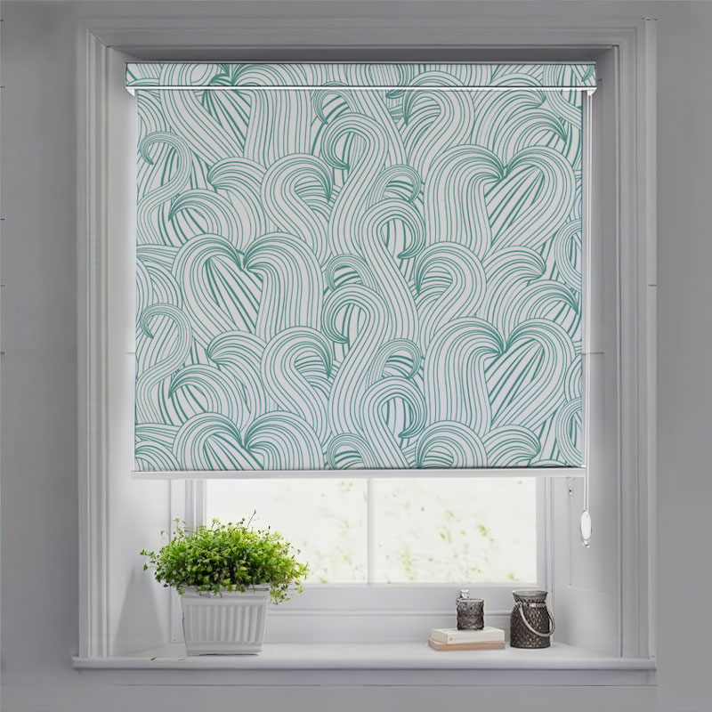 Aqua Blue Flowing Lines Roller Blind