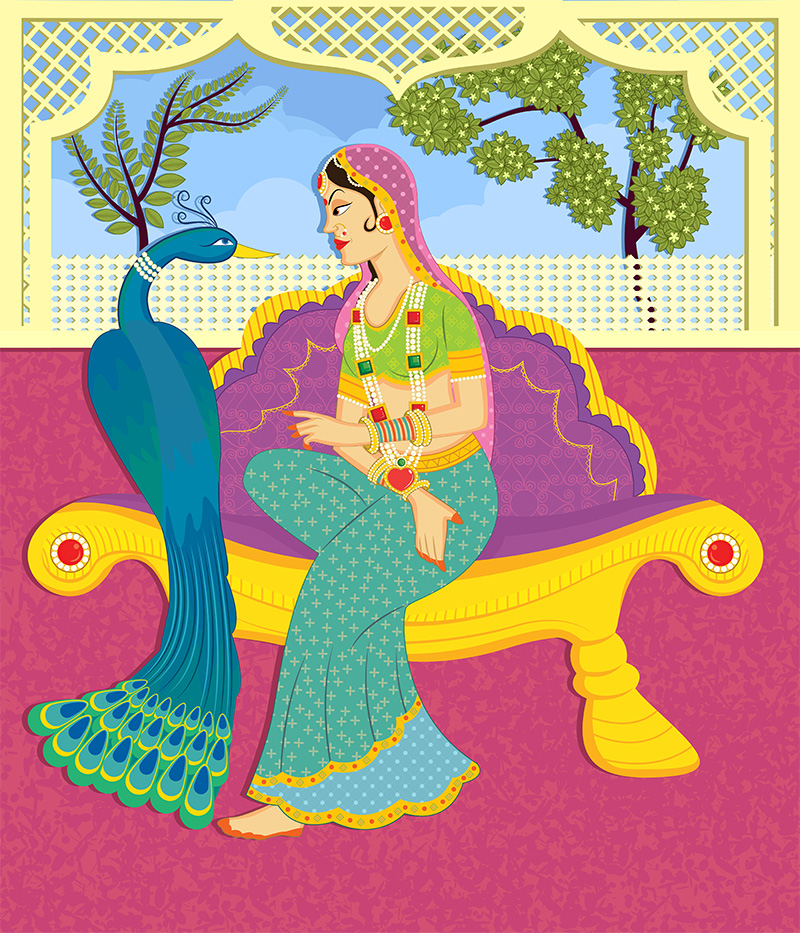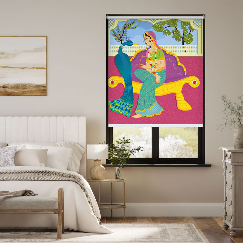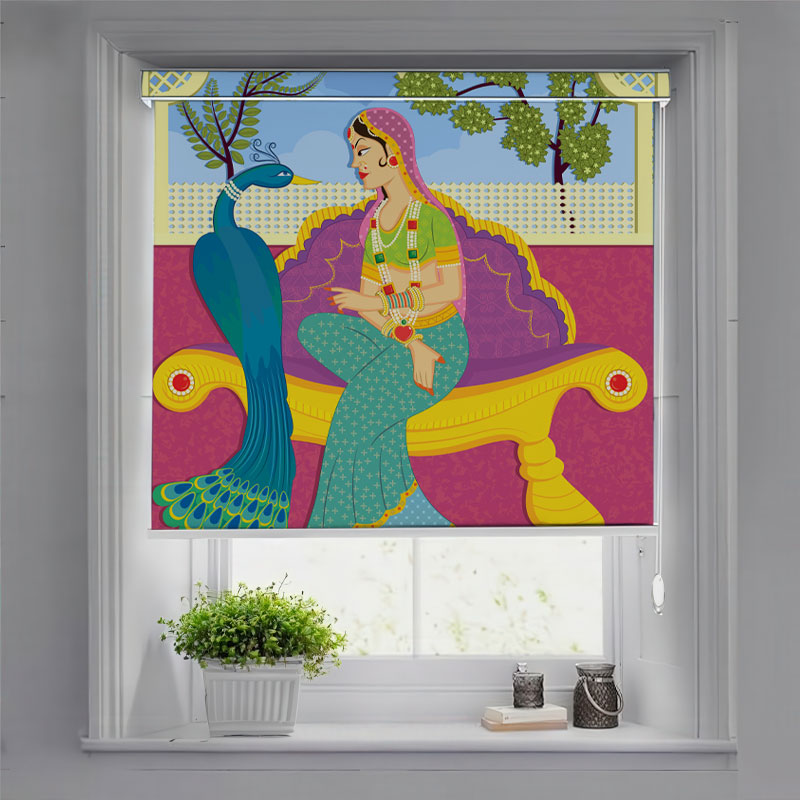 Folk Art Style Indian Royal Scene Roller Blind