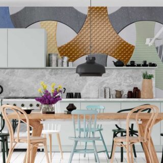 Use brick accent walls, slick leather furniture, and metallic accents to give your living space an industrial feel. The contrast of rough textures and polished surfaces creates a dynamic ambience that radiates modern sophistication—creating a vivid contrast between other spaces and helping you elevate the style quotient of your space. This also works uniquely very well with minimal aesthetic vibes as well. Its texture also creates a sense of illusion of mild embossing around the place.