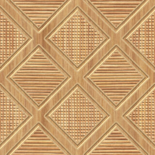 - Create an earthy atmosphere by pairing the wallpaper with rustic-looking furniture and warm-toned linens across the room.