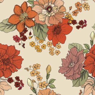 The wallpaper reflects traditional design styles and historical aesthetics that align with the period’s interior décor.