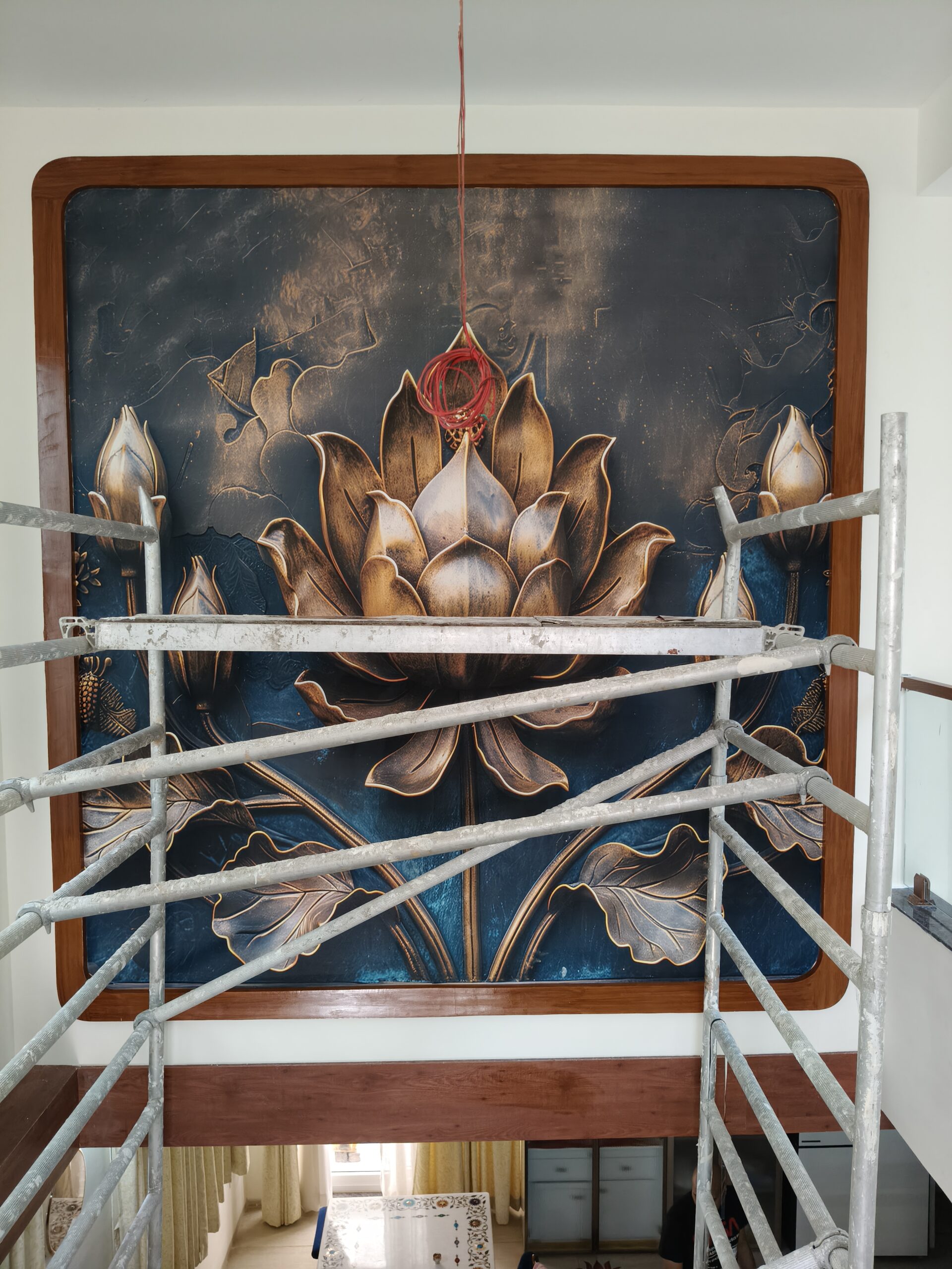 3D Metallic Texture Golden Lotus Wallpaper Mural