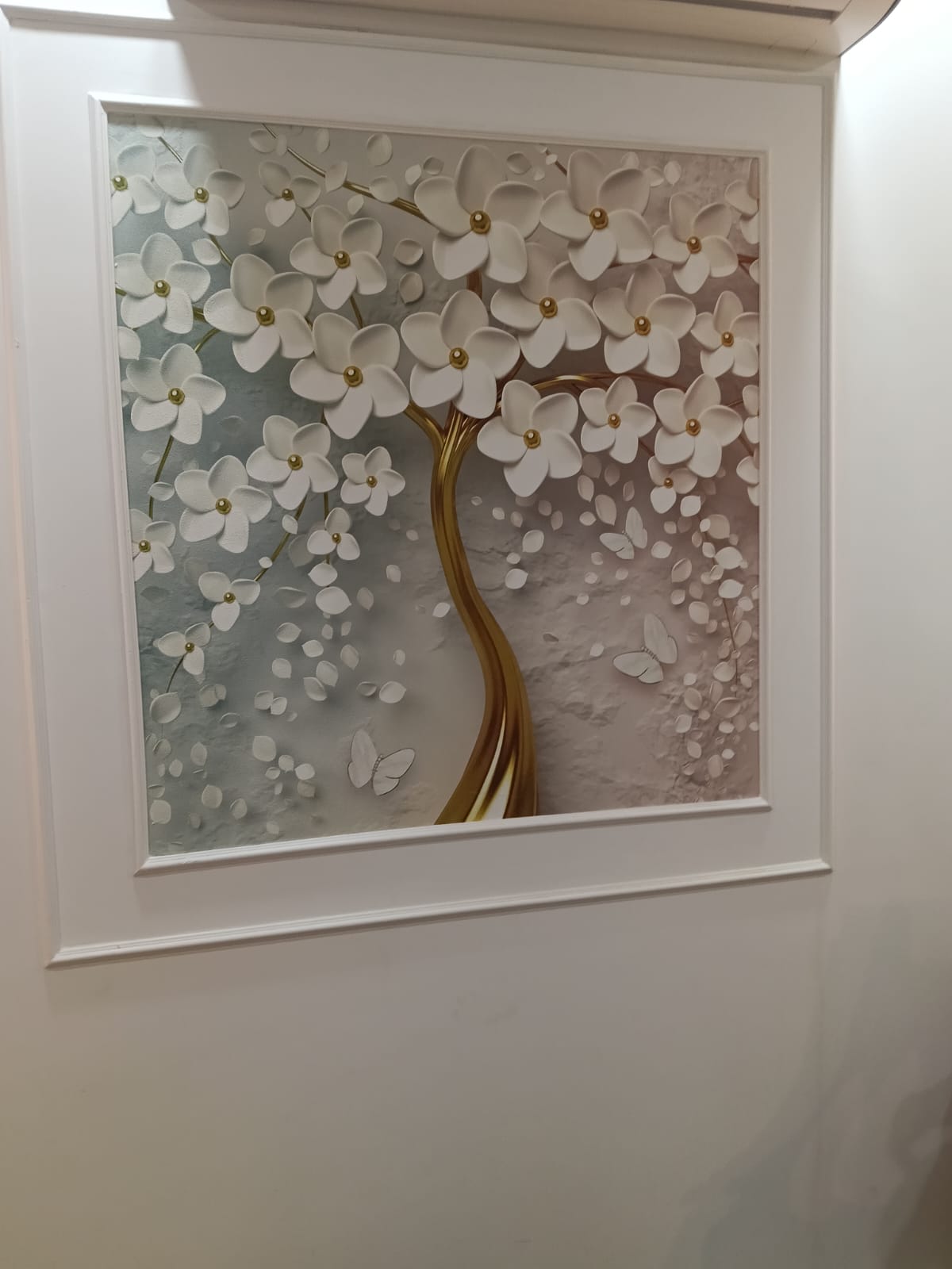 Phooleri, 3D Tree with White Flowers and Butterflies Wallpaper for Wall