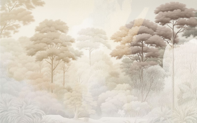 Aranyam, Neutral Hand Drawn Effect Nostalgic Forest Landscape Art wallpaper