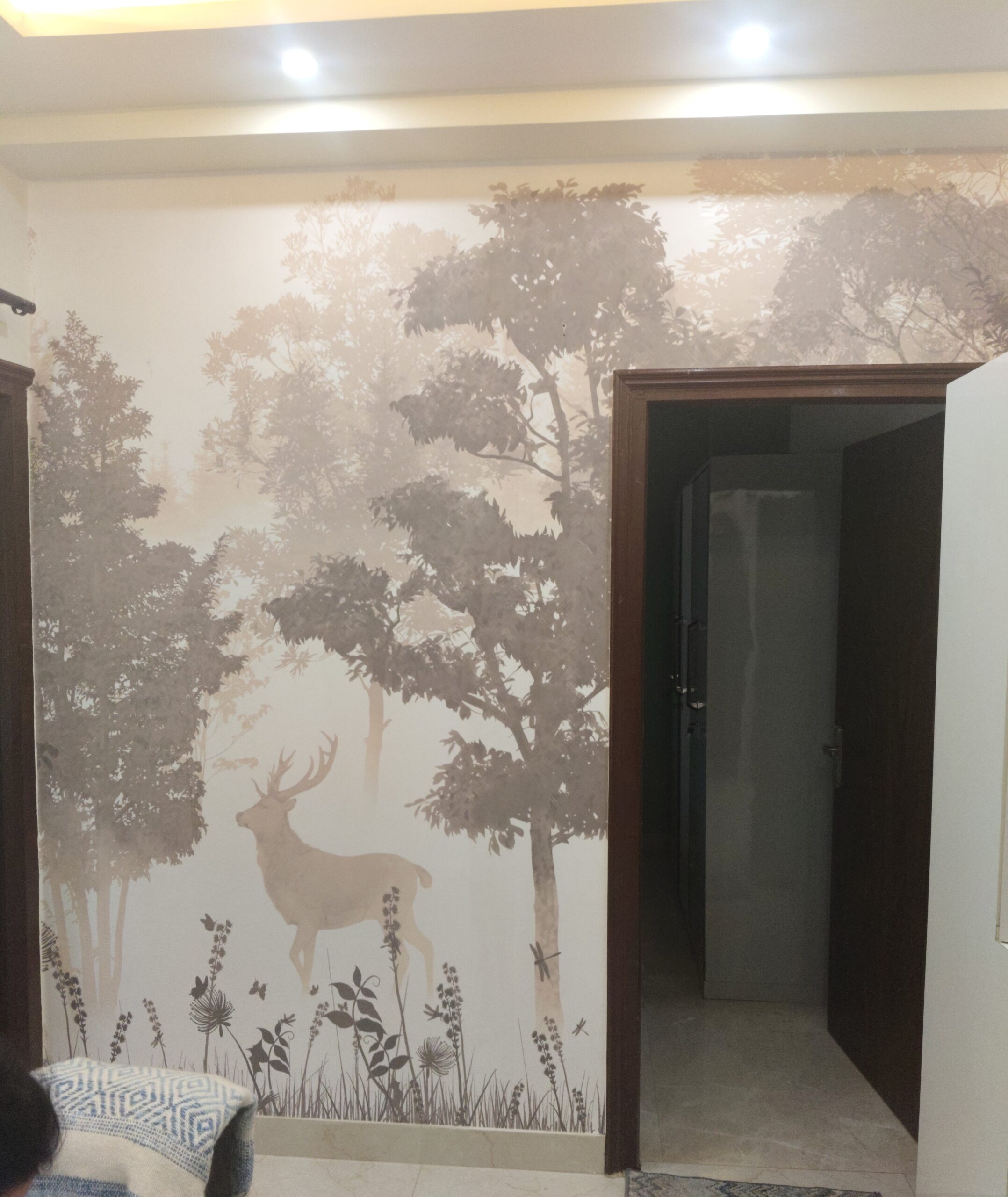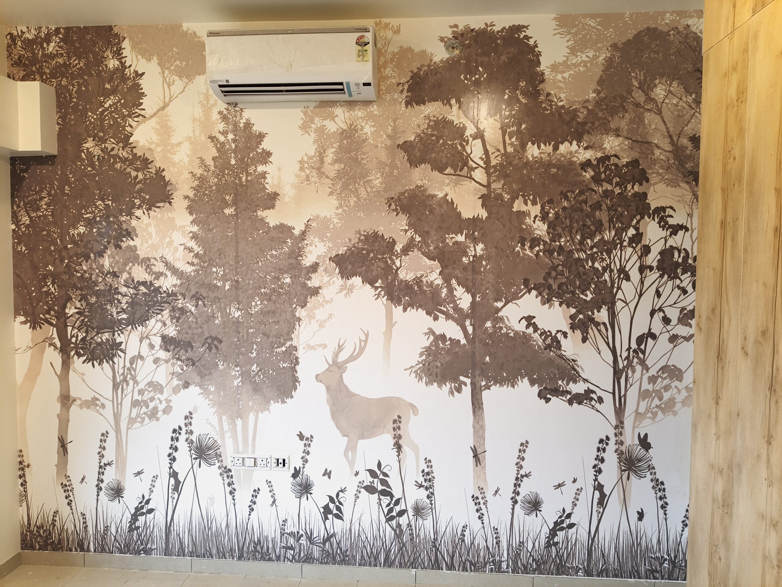 • Soft and Natural Colour Palette: This colour scheme gives the mural depth and realism by accurately capturing the mood of the foggy forest in tones of green, grey, and earth.