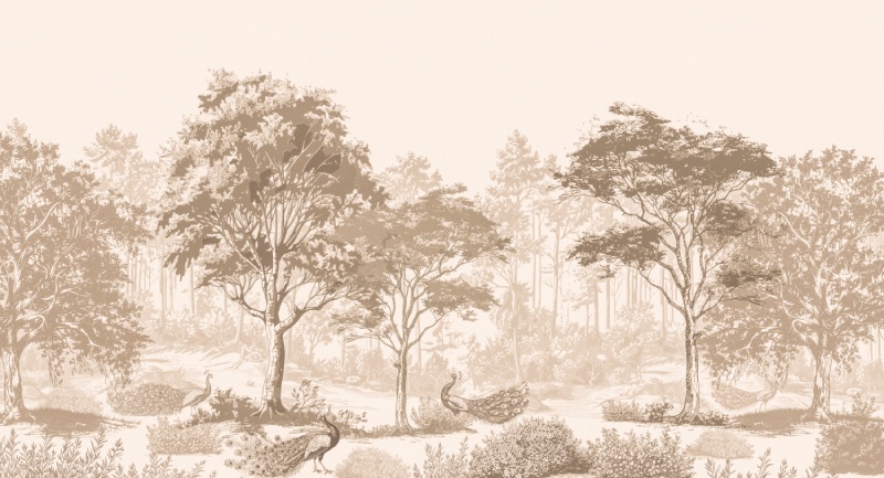 Mor Bagiya, Serene Sepia-toned Wandering Peacocks in Jungle Wallpaper m