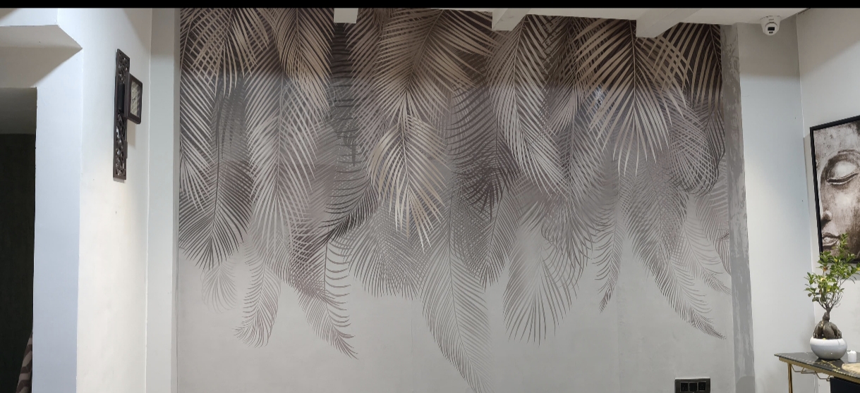 • Tropical Palm Leaves Theme: “Talipatra” depicts the eternal beauty of palm leaves in fresco style, adding a tropical touch to any interior space.